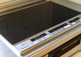操作が簡単なIHクッキングヒーターを設置。「火」を使わないので安全な上、お手入れも拭き取るだけで手軽です。