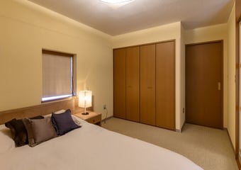 心地よい眠りを促すよう、寝室はやさしい色調で整えました。